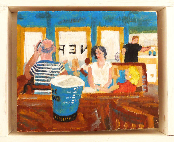 Terry works from drawings produced in small sketch books, mostly in soft pencil, sometimes with added colour and his paintings are in acrylics.